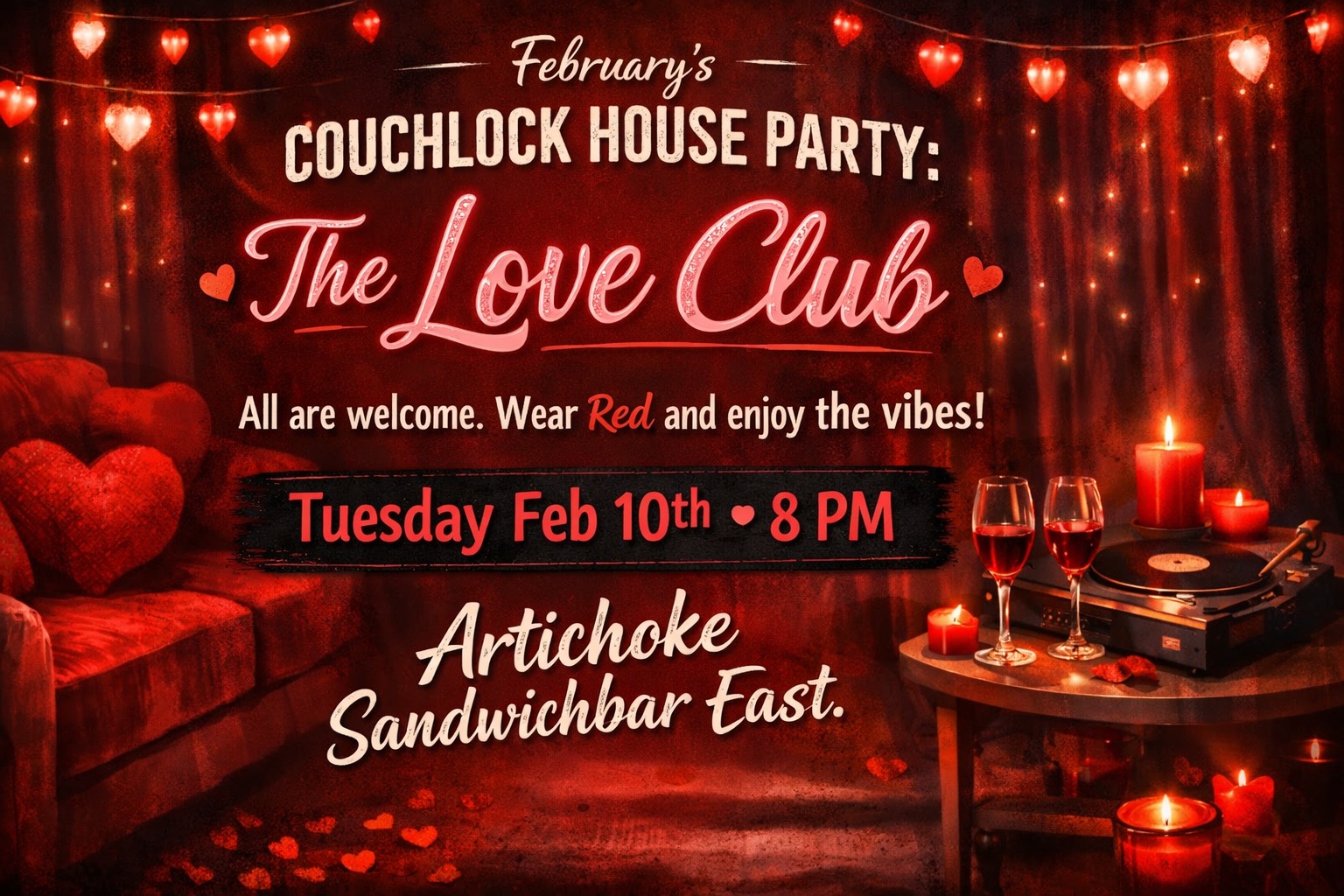 Feb 10 Couchlock House Party: The Love Club at Artichoke Sandwichbar EAST 8:00 pm Artichoke Sandwichbar EAST 2959 N. Rock Rd., Wichita Event Details Get Directions
