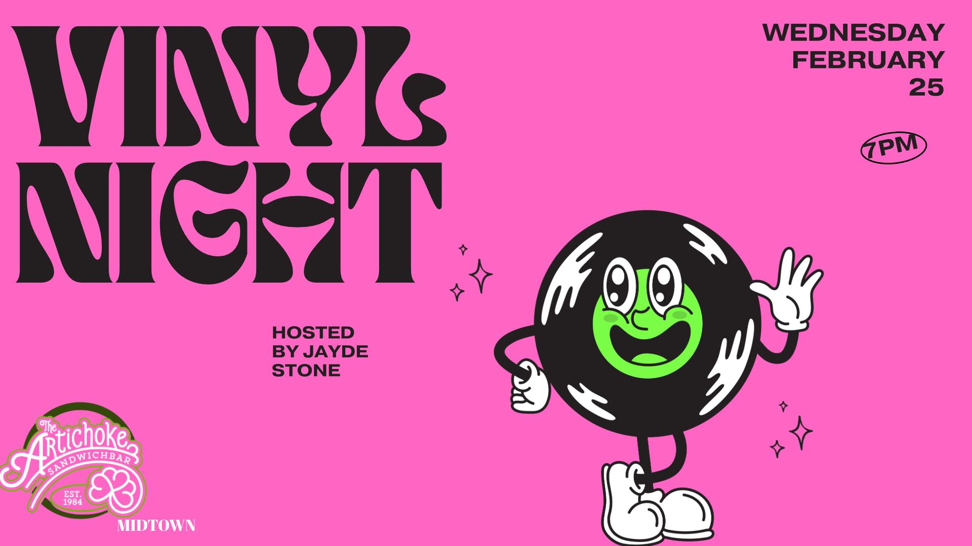Feb 25 Vinyl Night at Artichoke Sandwichbar MIDTOWN 7:00 pm Artichoke Sandwichbar MIDTOWN 811 N. Broadway, Wichita Event Details Get Directions