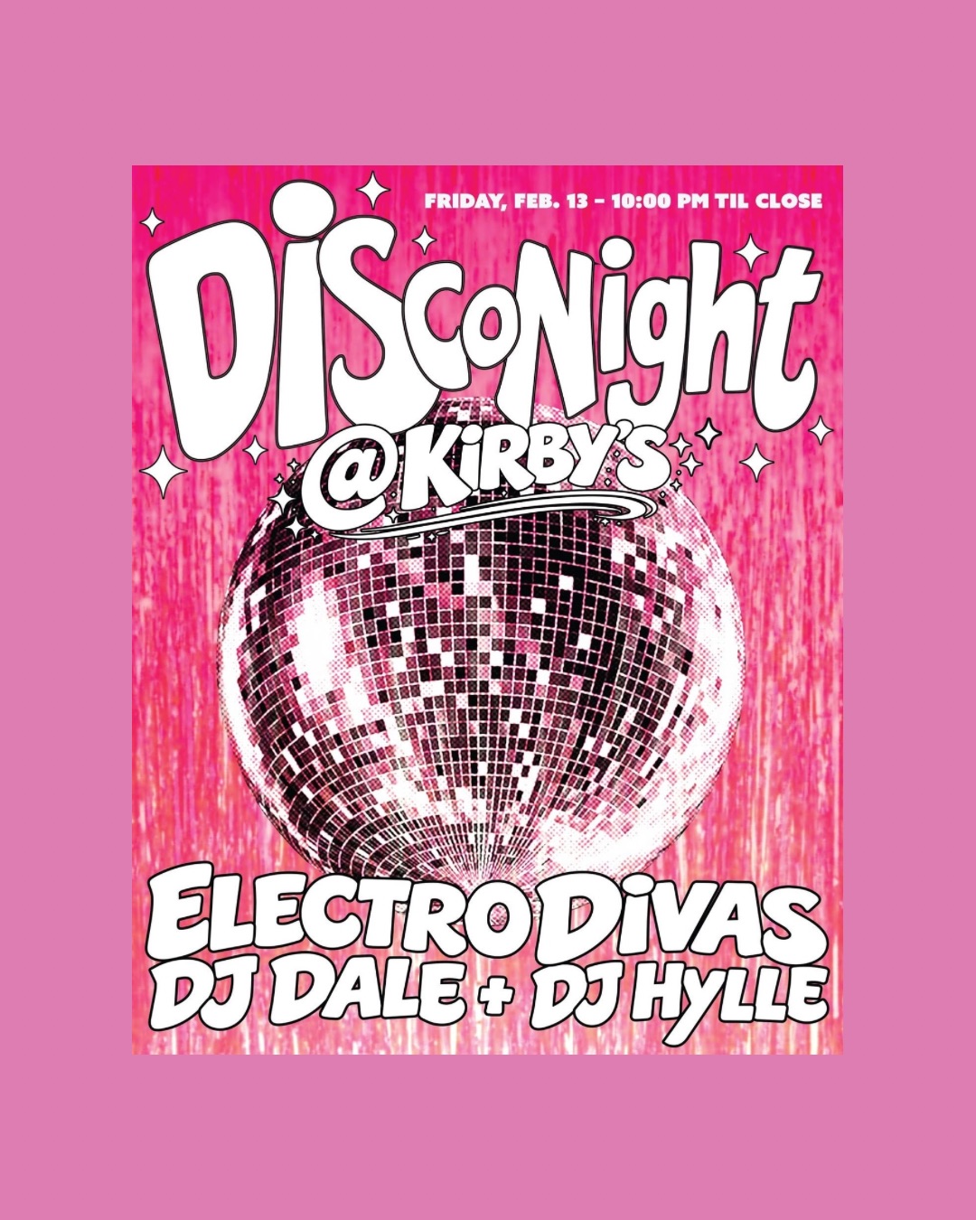 Feb 13 Disco Night with Electro Divas + DJ Dale + DJ Hylle at Kirby’s 10:00 pm Kirby's Beer Store 3227 E. 17th St, Wichita Event Details Get Directions