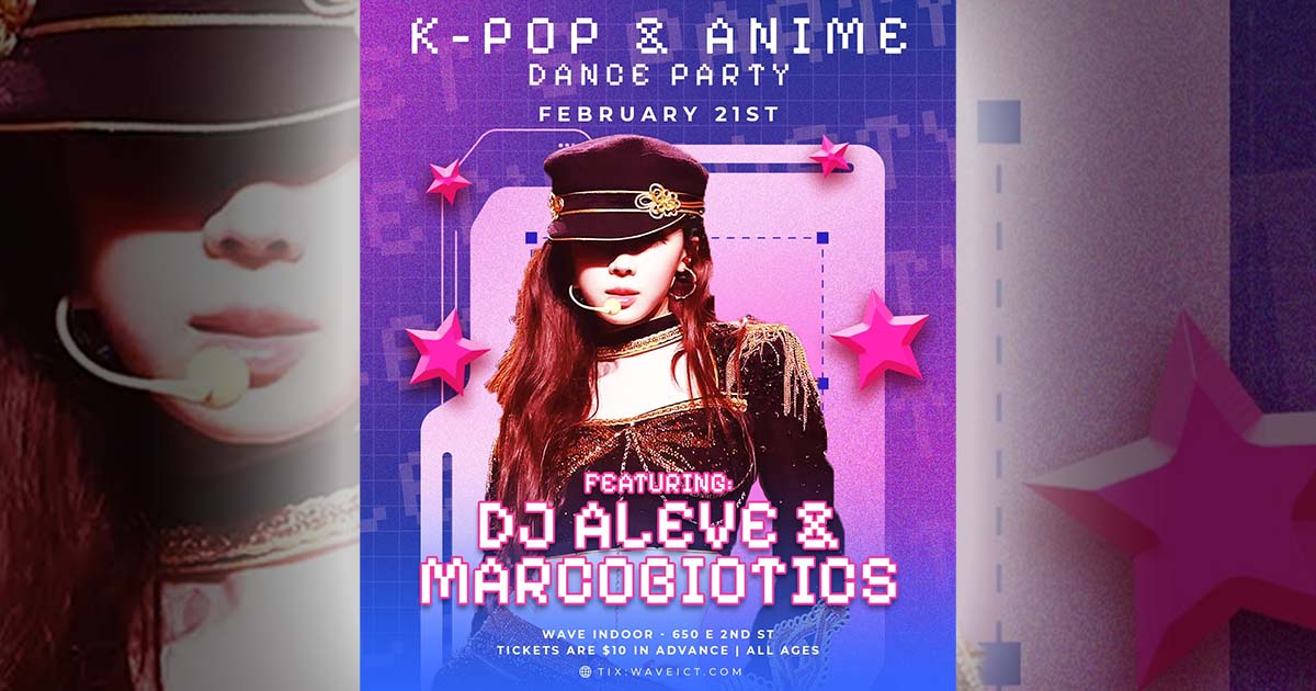 Feb 21 K-Pop & Anime Dance Party at WAVE 8:00 pm WAVE 650 E 2nd St. N., Wichita Event Details Get Directions