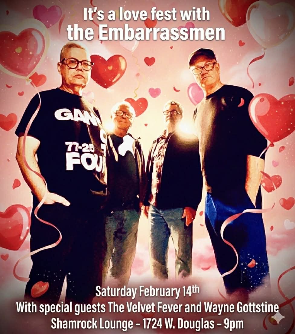 “V-Day Love Fest” with The Embarrassmen at Shamrock Lounge Feb 14 9:00 pm “V-Day Love Fest” with The Embarrassmen at Shamrock Lounge $5